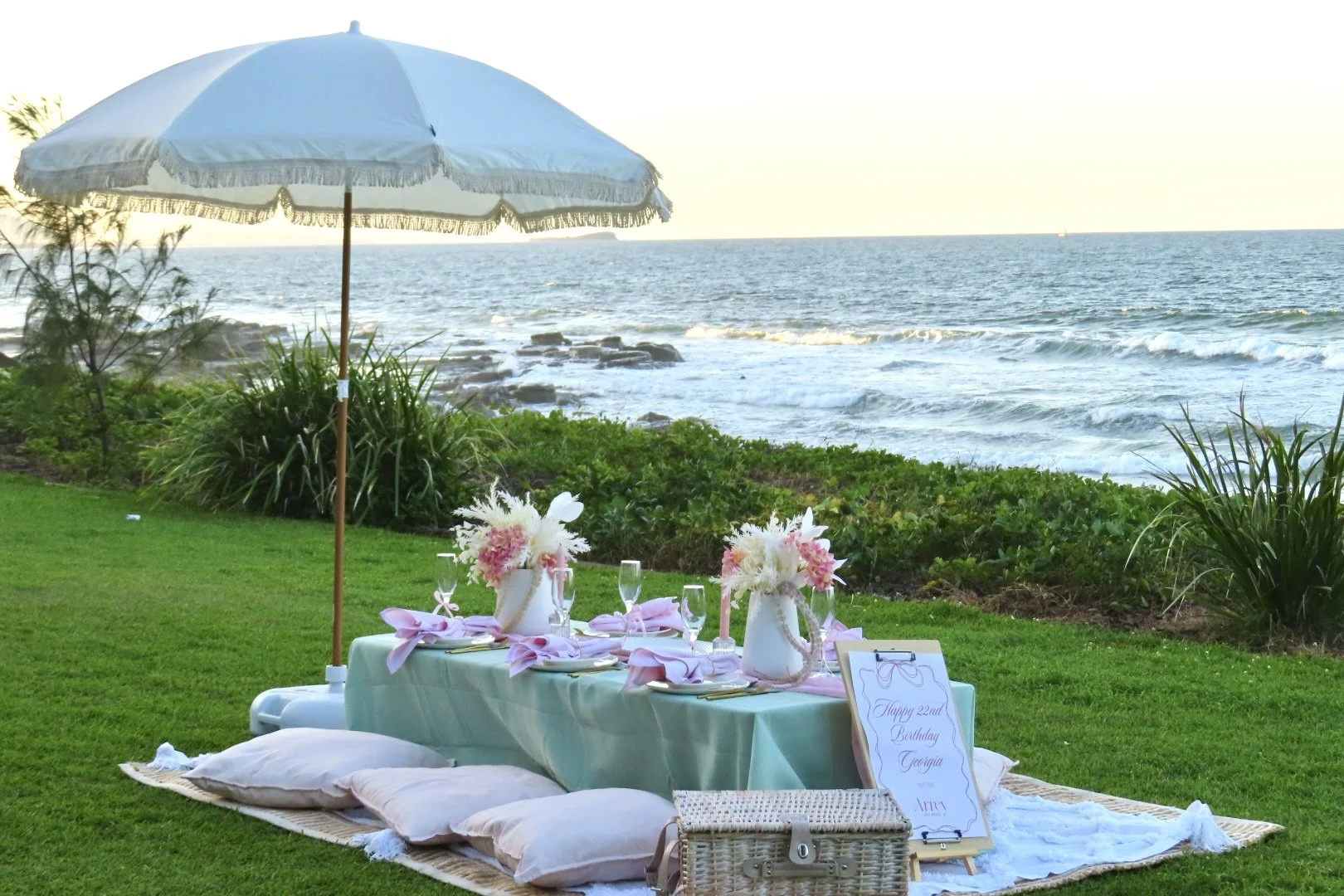 Our signature service offers a beautiful, stress-free luxury picnic experience tailored for birthdays, corporate events, milestone celebrations, and special gatherings. You simply arrive and enjoy, while we take care of every detail: planning, setup, styling, and pack-down. Designed for up to 16 guests, Our dreamy coastal escapes are designed for up to 16 Guests.